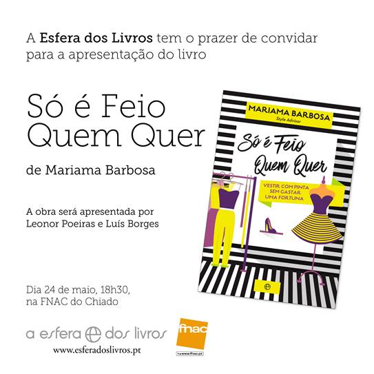A Esfera dos Livros | Hoje, apresentação do livro "Só é Feio Quem Quer" de Mariama Barbosa, Fnac Chiado maio 24, 2017 Share This Story Share on Facebook Share on Twitter Pin this Post Tags: Divulgação , Divulgação Esfera dos Livros Mensagem mais recente Mensagem antiga You Might Also Like 0 comentários