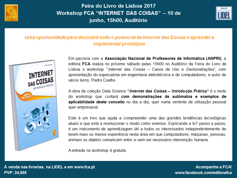 Página inicialDivulgação FCA | Workshop “INTERNET DAS COISAS” | 10 de junho 2017, 15h00 | Auditório da Feira do Livro de Lisboa byClube dos Livros •junho 08, 2017 0 Tags: Divulgação Divulgação FCA Facebook Twitter